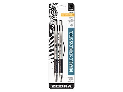 Zebra G-301 Retractable Gel Pen, Medium Point, 0.7mm, Black Ink, 2 Pack (41312)