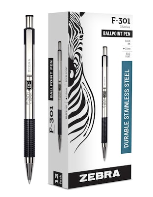 Zebra Pen, F-301 Retractable Ballpoint, 1.6mm, Color: Black, Quantity: Dozen. Extra Bold.