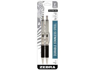 Zebra F-402 Retractable Ballpoint Pen, Fine Point, 0.7mm, Black Ink, 2 Pack (29212)