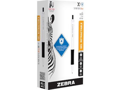 The same Sarasa Dry X1+ you've come to love, now with special built-in protection to help suppress the growth of bacteria. This pen uses a special resin incorporated into the plastic that makes it difficult for germs, bacteria, and viruses to grow. Take notes with sharp confidence and this Zebra Sarasa black retractable gel pen. The thick barrel with contoured rubber grip provides enhanced control and comfort. The pen glides across the pages without smearing or smudging due to its rapid-dry ink. The Zebra Sarasa Dry X1+ comes in a pack of a dozen, making it easy to keep your home or office stocked.