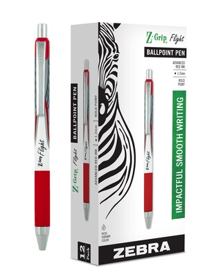 Zebra Z-Grip Flight Retractable Ballpoint Pen, Bold Point, 1.2mm, Red Ink, Dozen (21930)