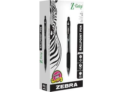 Zebra Z-Grip Retractable Ballpoint Pens, Fine Point, 0.7mm, Black Ink, Dozen (23910)