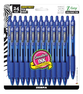 Zebra Z-Grip Retractable Ballpoint Pens, Medium Point, 1.0mm, Blue Ink, 24/Pack (ZEB12225)