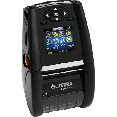 The Zebra ZQ610 Plus Mobile Printer (Model: ZQ61-AUFA004-00) is a compact and rugged direct thermal printer designed for on-the-go label and receipt printing in demanding environments. Engineered for high performance and reliability, it delivers fast print speeds of up to 4.5 inches per second at 203 dpi resolution. With a maximum print width of 1.89 inches and support for multiple media types including labels, tags, and receipts, the ZQ610 Plus ensures versatile printing solutions. It features advanced connectivity options including Bluetooth 4.2, USB 2.0, and optional WLAN and NFC, while a powerful 3250 mAh removable lithium-ion battery supports extended use in the field. The printer is IP54-rated for resistance to dust and water and can withstand multiple drops from 5 feet, making it ideal for industrial, retail, and transportation environments. With 256 MB RAM and 512 MB Flash, the ZQ610 Plus is optimized for performance and ease of integration across multiple platforms, including iOS, Android, and Windows.