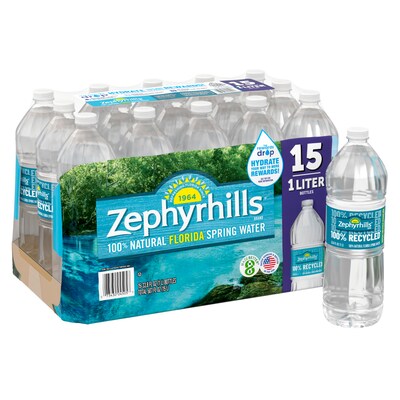 Zephyrhills 100% Natural Spring Water, 33.8 oz., 15 Bottles/Carton (11475332)
