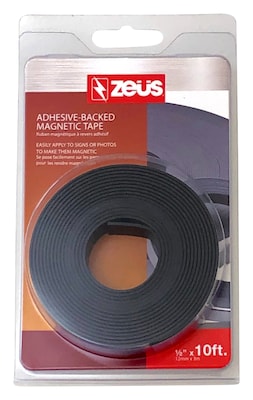 Make a memo board, create interactive diagrams or liven up the refrigerator with this magnetic tape strip. The strong adhesive is built to last and sticks firmly to photographs, business cards, labels or paper decorations. This roll includes 10 feet of 0.5-inch thick Zeus adhesive magnetic tape.