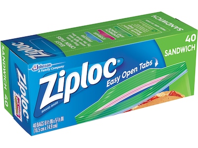 Ziploc Sandwich Bags, 6.5", 40 Bags/Pack, 12 Packs/Carton (54-3115-036CT)