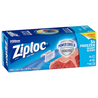 Ziploc Slider Freezer Bags, Quart, 34/Carton (316486)
